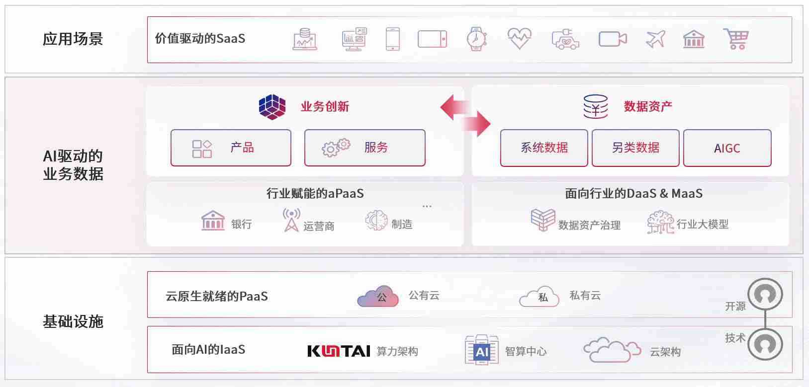 数字时代,,,,围绕企业数字化转型的关键要素,,NO钱包数码开创性的提出数云融合战略和技术体系框架,,,,着力在云原生、、数字原生、、、AI原生和信创产业上架构产品和服务能力,,,,为处在不同数字化转型阶段的快消零售、、汽车、、、金融、、、、医疗、、、、政企、、、教育、、、运营商等行业客户提供泛在的敏捷IT能力和融合的数据驱动能力,,,构建跨界融合创新的数字业务场景和新业务模式,,助力企业级客户建立面向未来的核心能力和竞争优势,,,全面推动社会的数字化、、智能化转型升级。。。。